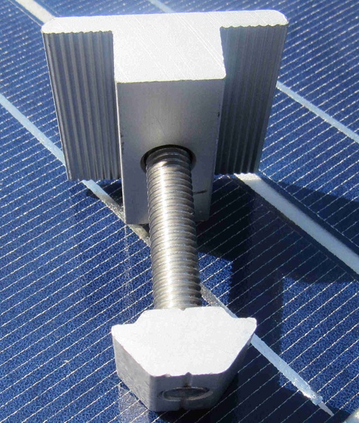 Притиск двосторонній, універсальний, комплектний, для сонячних фото модулів з рамкою 35мм. Ширина міжпанельного проміжку 17мм.