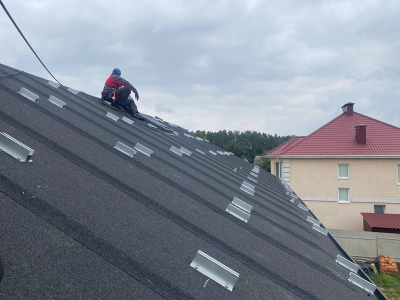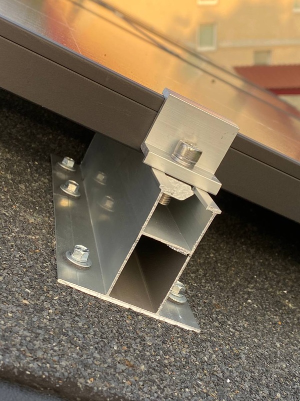 Спеціальний кронштейн для безпрофільної установки сонячних батарей на металопрофіль та бітумну черепицю.Комплект постачання: